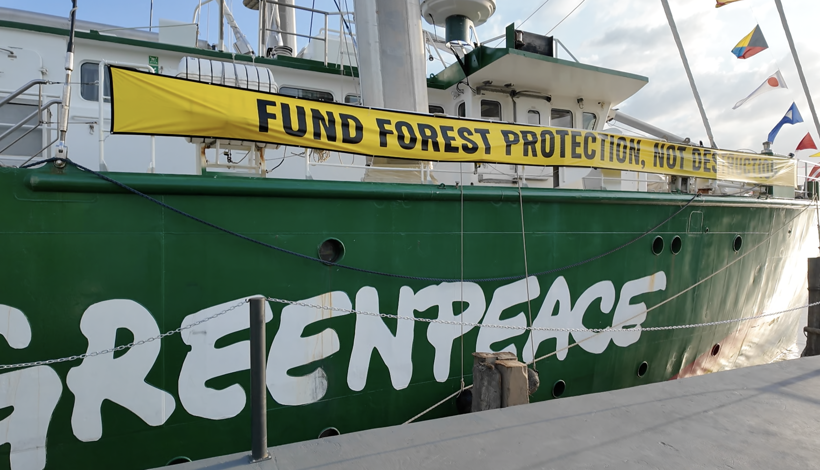 Rainbow Warrior sendiri telah bersandar sejak awal November di Porto UFPA setelah berlayar dari Bogotá dan dibuka untuk umum agar masyarakat dapat mempelajari sejarah pelayaran, kampanye, serta kerja-kerja lingkungan Greenpeace di berbagai belahan dunia.