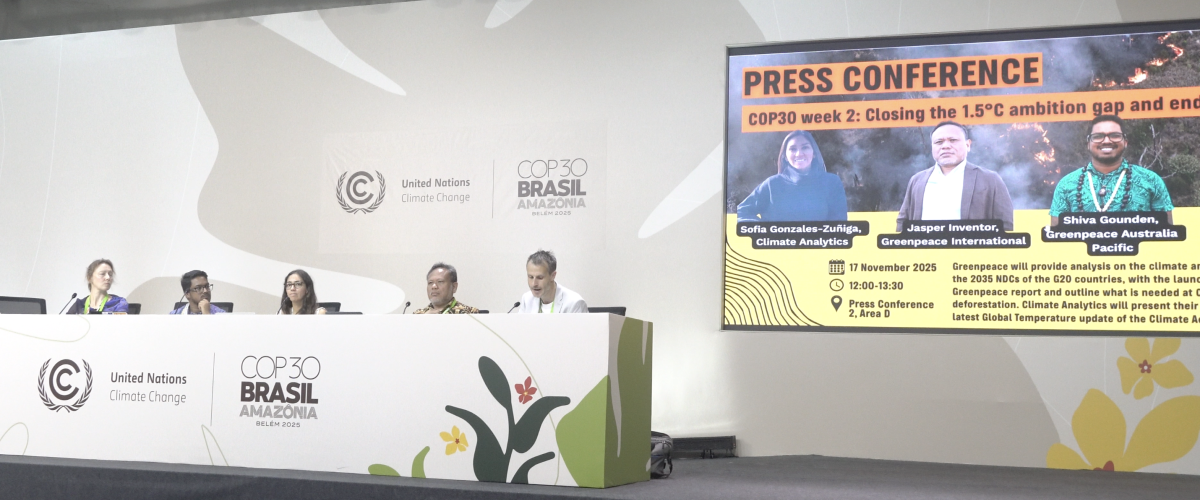 Belém, 15 November 2025 — Greenpeace menyampaikan seruan tegas mengenai perlindungan hutan dan penguatan akses pendanaan langsung bagi masyarakat adat dan komunitas tradisional.